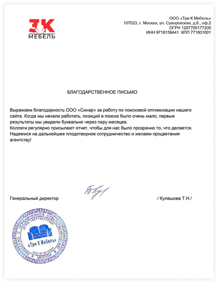 CINAR не увеличивает искусственно смету. Предлагает сильные seo инструменты, которые действительно работают в данной области на привлечение стабильного и надежного трафика. При ограниченном рекламном бюджете ищем альтернативные методы и поддержку, не теряя контроля качества работ. Находимся в поиске незаезженных идей и различных видов оптимизации.